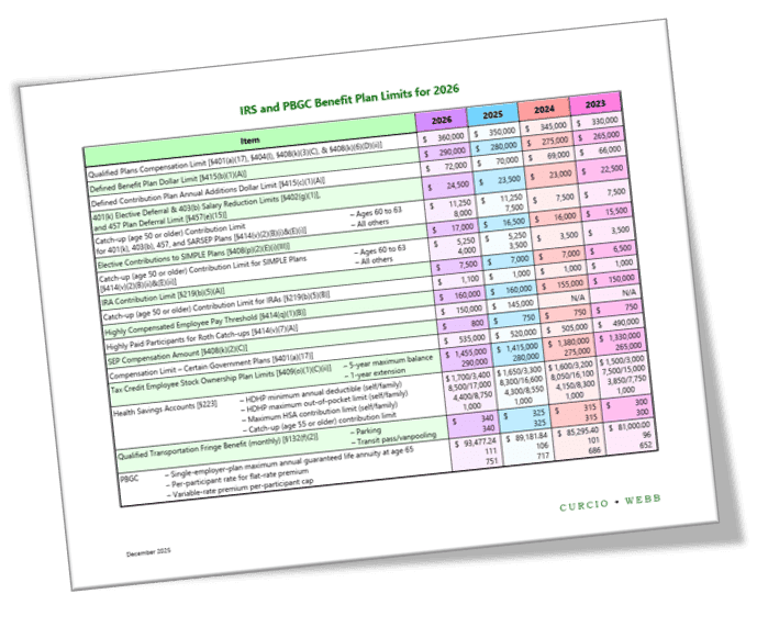 IRS and PBGC Benefit Plan Limits -Updated for 2026